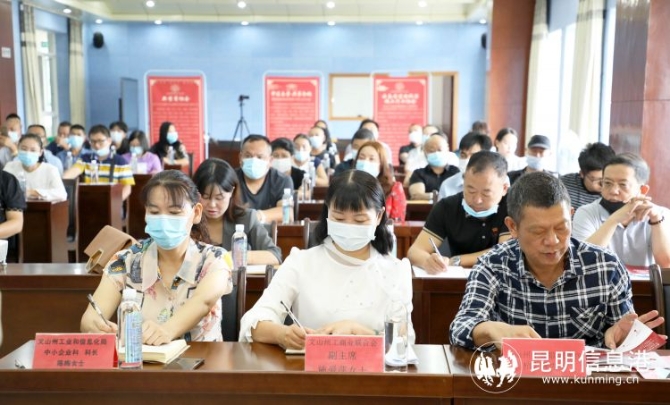 文山州工商业联合会副主席施爱萍,文山州工商联副主席、文山金菓种植有限公司董事长柏金辉,文山州工业和信息化局中小企业科科长陈梅,云南省道路桥梁施工行业协会会长陈纪江,文山州中小企业公共服务窗口平台总经理谭国亮,云南海瀛科技有限公司平台负责人张景瑞出席活动。