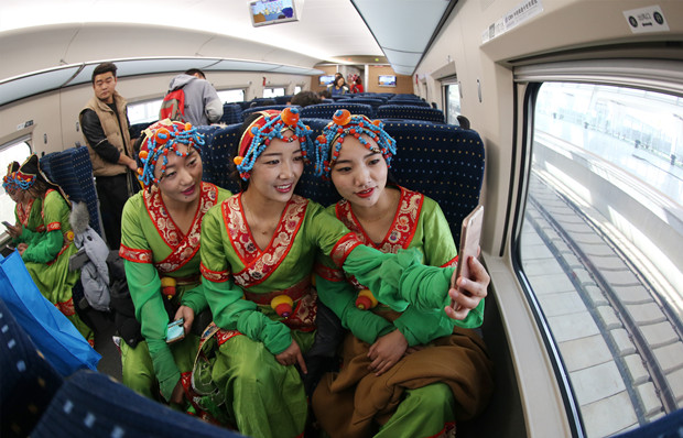 云南民族群众高铁首发乘车代表团 记者 杨峥 摄