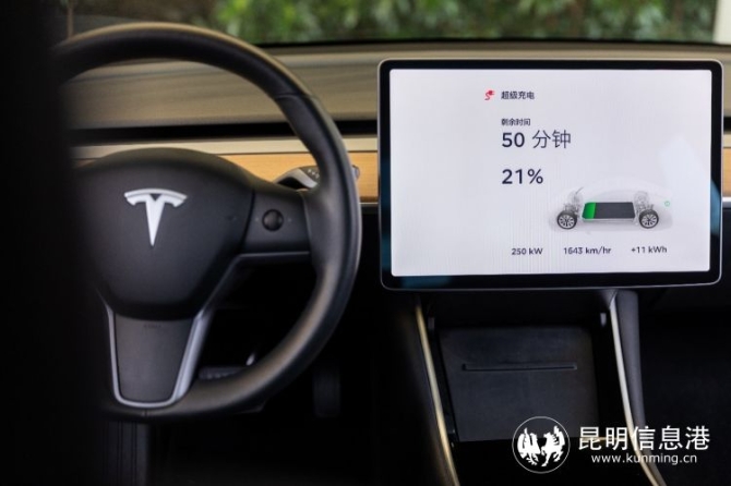 昆明信息港讯 记者上官艳君 8月28日,特斯拉在昆明的首座V3超级充电站于南亚风情第壹城B1层投用。共设置6个V3超级充电桩,充电15分钟最快可补充250公里以上的续航里程,显著缩短平均充电时间。