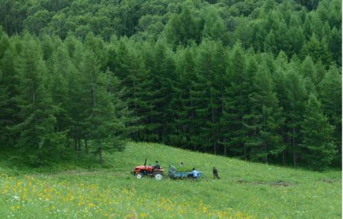 工人在塞罕坝机械林场千层板林场内运输苗木