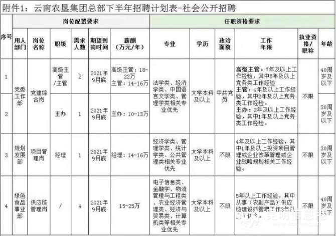 昆明信息港讯 实习记者姚仲恒 记者30日从云南农垦集团获悉,云南农垦集团面向社会招聘主办、主管、经理等共计8人,本次招聘涉及党建综合岗、项目管理岗和供应链管理岗共计3个岗位。