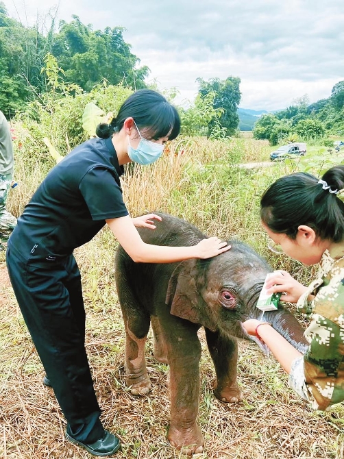 8月29日,一头出生刚6天的幼象被象群遗弃在西双版纳州勐伴镇农地里。被发现后,西双版纳州林草局等多部门联合实施救治。