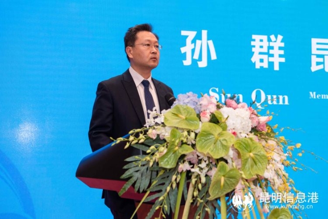 昆明市委常委、副市长孙群致辞,希望昆明市人民政府外事办公室全面发挥资源优势,深度结合自贸区昆明片区(昆明经开区)政策优势,不断提高开放型经济水平,把“引进来”和“走出去”更好地结合起来,加强国际交流合作,通过国际活动、国际项目服务自贸区产业发展。