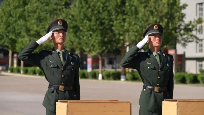 “我们接过来的不仅是棺椁本身的重量,更是一种使命和烈士对我们的嘱托。我们将以最标准的动作、最高的规格和最饱满的精神状态,将烈士遗骸接回家!”