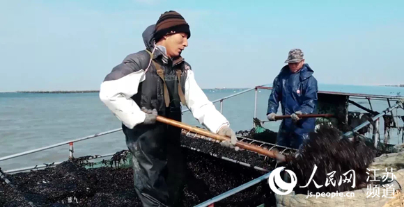 黄窝村的村民收获紫菜。连云区委宣传部供图