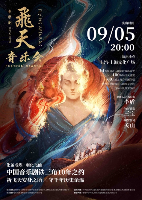 由“中国音乐剧教父”李盾倾力打造,何李活(深圳)音乐剧产业发展有限公司、泽筠(上海)文化传播有限公司联合出品,东莞塘厦松雷音乐剧剧团有限公司联合制作,中国音乐剧“铁三角”李盾、三宝、关山担任主创的史诗音乐剧《飞天》主题音乐会即将于9月5日在上汽•上海文化广场举行。