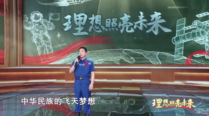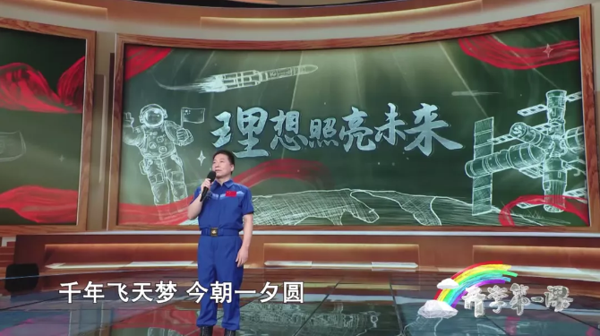 “党和国家为我们铺就了‘飞天之路’,十四亿中国人民托起了我们,把我们送入浩瀚的太空。”在节目中,杨利伟倍感自豪地说道,“如今,我国的航天事业已经进入了‘空间站时代’,未来中国空间站也将成为全人类在外太空共同的家。”演讲最后,杨利伟给同学们送上开学寄语,号召大家一起用知识和理想,照亮美好的明天。