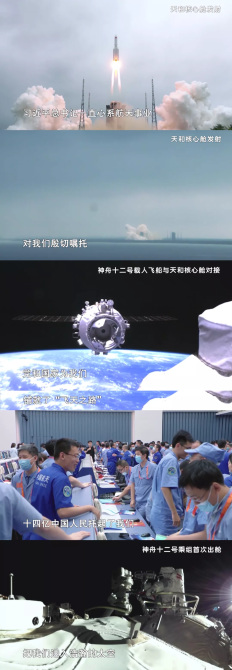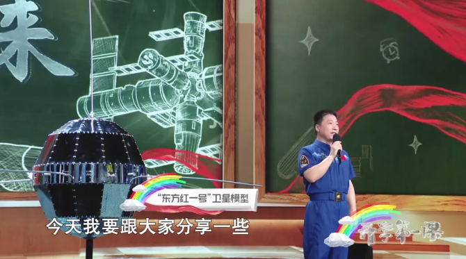 在《开学第一课》节目里,不仅播放了当年“东方红一号”、神舟五号、天和核心舱等发射升空的影像画面,舞台上还出现了“东方红一号”卫星模型,带给同学们以更加直观的认识与感受。