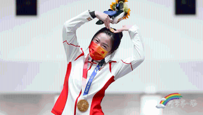 在《开学第一课》的舞台上,拥有甜美笑容的奥运冠军杨倩,在和全国同学进行云连线时,又对着镜头比了一个大大的爱心,重现了颁奖仪式上的可爱“名场面”,也把观众的思绪重新拉回到了那个扣人心弦的夺冠时刻。