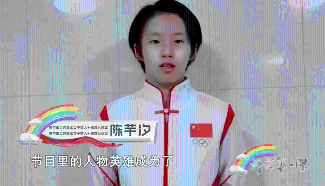 在备战奥运的时间里,陈芋汐把《开学第一课》中的英雄先辈当成不怕困难、积极面对挑战的榜样,“曾经我也是《开学第一课》的观众,节目里的人物英雄成为了我战胜困难的力量,积极面对困难,勇于接受挑战,向着自己的目标勇敢地前进”