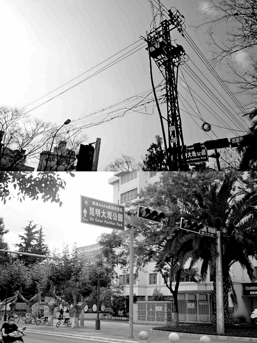 “春城的蓝天白云让人心醉,但街头密集的线缆令人头皮发麻,一圈圈好似‘猴赛雷’”。近年来,有赴昆游客曾在网络上有感而发,吐槽昆明部分城区架空线上“线缆附挂”极不美观,也不安全。2021年,随着盛会临近,这一现象有了极大改观。