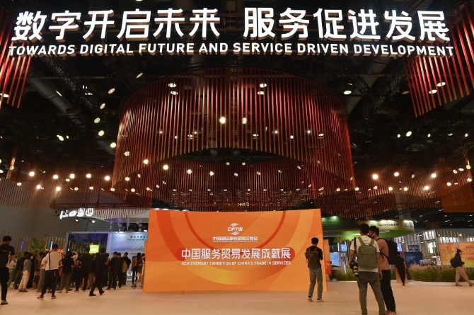 8月31日,媒体记者在2021年中国国际服务贸易交易会国家会议中心展馆内探访。新华社记者 鲁鹏 摄