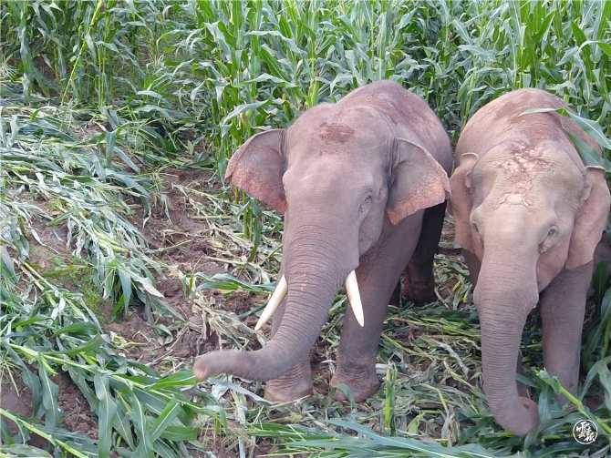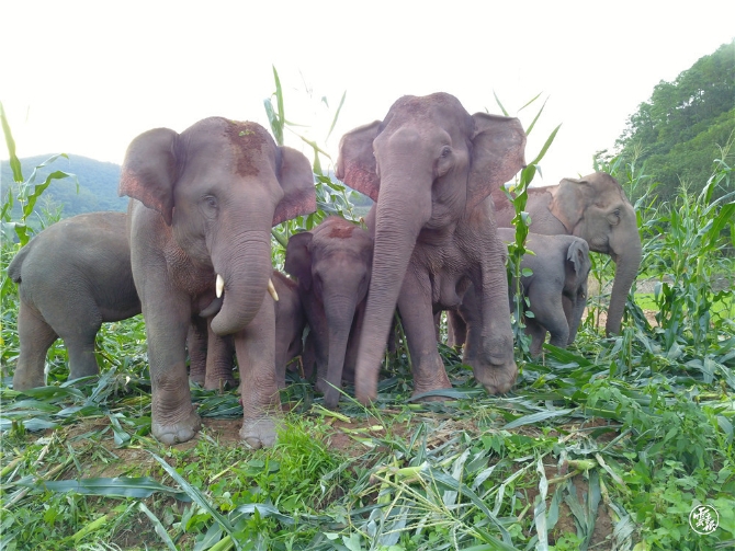 亚洲象进入村民农田采食玉米