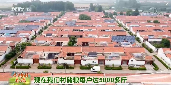 山东省日照市莒县招贤镇相家官庄村村民 赵廷义:我们农村流传着这么一句话就是“手里有粮,心里不慌”。这个粮囤有两种:一种是蓝色的,高1.5米,三节,每节50公分,直径有1.2米,装满能装2200斤粮食;这一种是灰色的,能装一千八九百斤粮食。现在我们村每户储粮达5000多斤,家家户户储备粮食让我们有了底气。