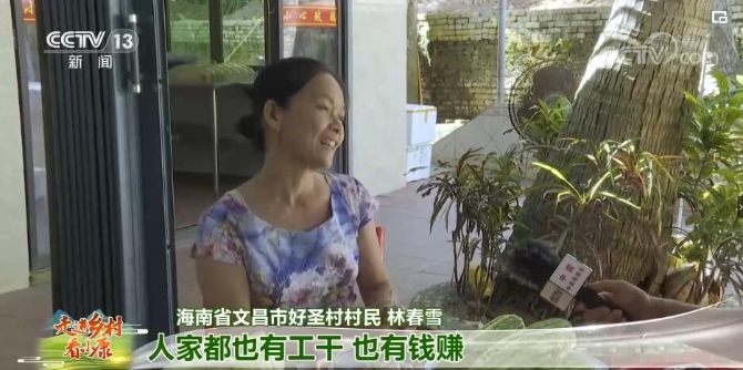 海南文昌市好圣村村民 林春雪:我们现在生活得很幸福,你看一下我们整个村庄每家每户都有新房子住,人家都也有工干,有钱赚,肯定是很幸福的。