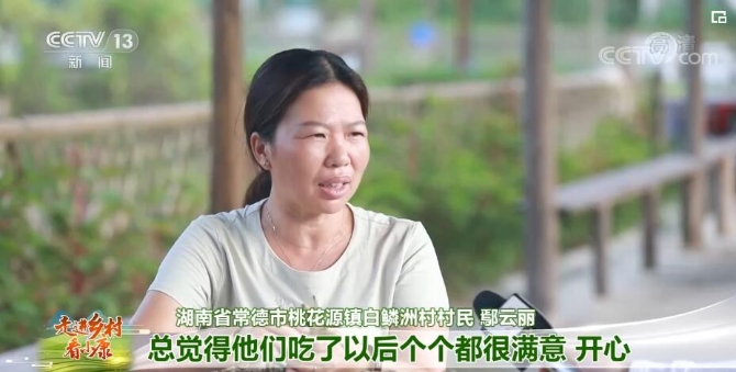 湖南常德市桃花源镇白鳞洲村村民 鄢云丽:幸福,幸福。现在幸福的原因是什么呢?我家里的老人也照顾到了,小孩也照顾到了,钱也赚到了。坐在家里都有游客来,体验我们原生态的菜,总觉得他们吃了以后个个都很满意、开心。看到他们高兴,我们也就特别开心。