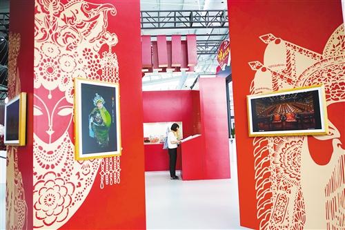 观众在服贸会文旅服务专题展区“大戏看北京——京剧文化之旅特展”参观。特展设置了多个京剧主题体验区,让观众沉浸式感受京剧文化的魅力。
