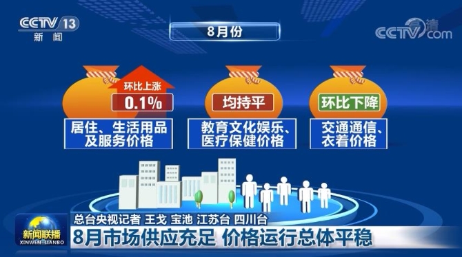 国家统计局今天(9月9日)公布数据显示,8月份,我国消费市场供应充足,价格运行总体平稳,实现全年物价调控目标基础牢靠。