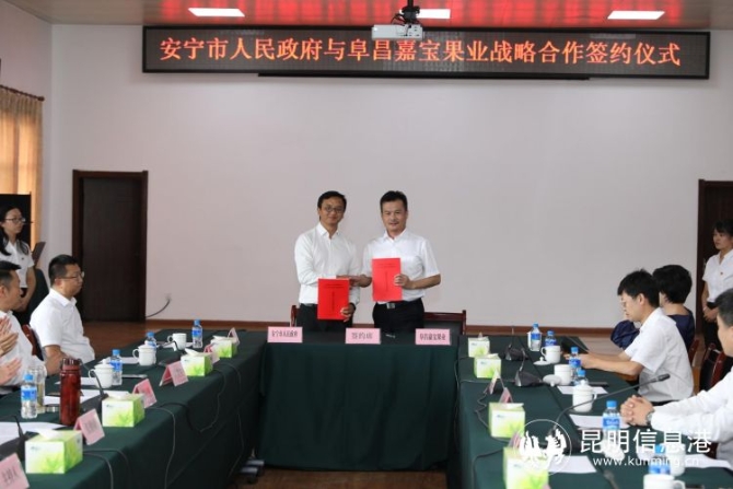 安宁市领导张勤勋、毕绍刚、浦泰、尹贵生、耿玉立等出席签字仪式。此次与安宁市签订战略合作框架协议的4家企业,分别是云南文化产业投资控股集团有限责任公司云南文投集团、联想佳沃集团、广东阜昌嘉宝果产业有限公司和中国邮政集团有限公司昆明市分公司。