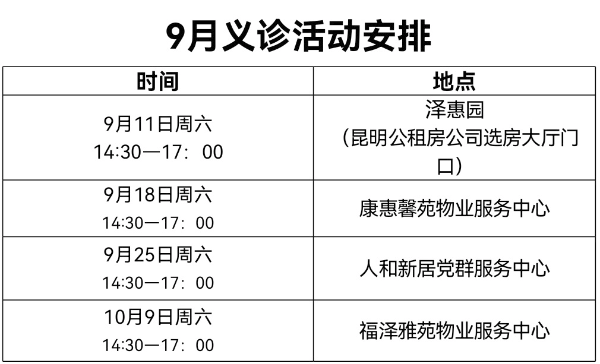 “针对公租房住户收入不稳定、老年人群体偏多的现状及需求,本届邻里节特别联合云南省中医药学会组建起一支‘公租房社区邻里节名医团’队伍,在9月份的每个周末持续走进公租房小区,为广大公租房住户提供肾病、糖尿病、高血压病、心脑血管疾病、骨伤科、针灸、康复理疗、耳鸣耳聋等科目的检查与问诊服务。”昆明市住保局相关负责人表示,希望通过一系列面对面、零距离的义诊行动,切实做到“为民办实事”,增强公租房住户的健康保健意识,切实为公租房小区住户送关怀、送健康、送温暖。
