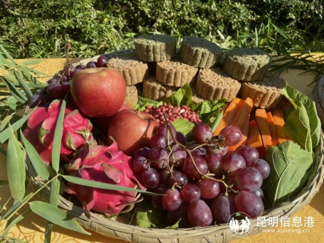 昆明信息港讯 记者段佳琪 中秋将至,9月12日,云南野生动物园为园内动物发福利,按照他们的生活习性和口味,招募了一群小朋友,制作了12种花式月饼,让小动物们与游客一起欢度佳节。