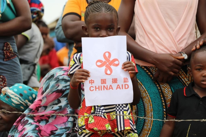 这是2017年拍摄的通过联合国难民署获得中国援助物资的非洲孩子。