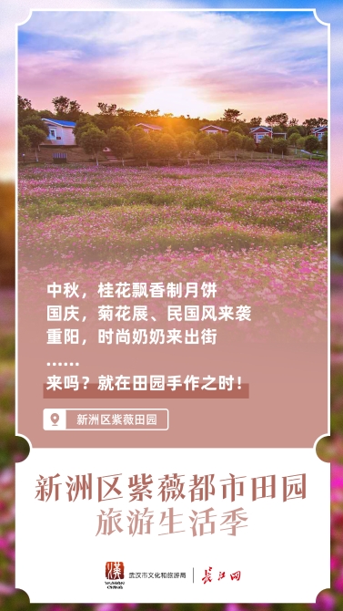 9月10日至9月30日期间,武汉市文化和旅游局组织23家重点乡村旅游景区派送80万张乡村旅游惠民券;并发布图文并茂的《武汉乡村旅游指南》。