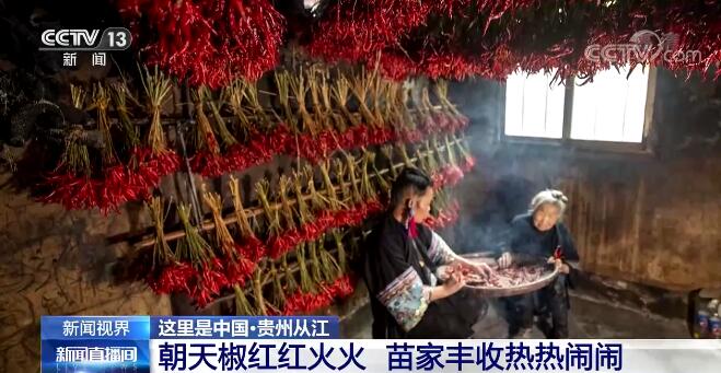 眼下,在贵州省黔东南苗族侗族自治州从江县的田地里,一簇簇火红的朝天椒迎来收获。苗族摆啊村的村民趁着天好,忙着将捆好的朝天椒挂在家中灶台上烘烤,准备出售。朝天椒管理简单,效益稳定,当地采取“公司+基地+农户”的模式,结合市场需求,带动当地山区农户脱贫致富。