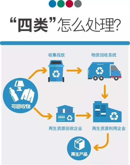 在处理上,已分类的生活垃圾应按规定运往指定的集中处理设施并做好接收、计量等记录;可回收物进入再生资源回收渠道;有害垃圾交由具有危险废物处置资质的单位处置;厨余垃圾就近运到小型分散式厨余垃圾处理点处理并单独计量;其他垃圾就近转运到生活垃圾中转站进行压缩,最后运送至生活垃圾焚烧发电厂处理。