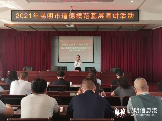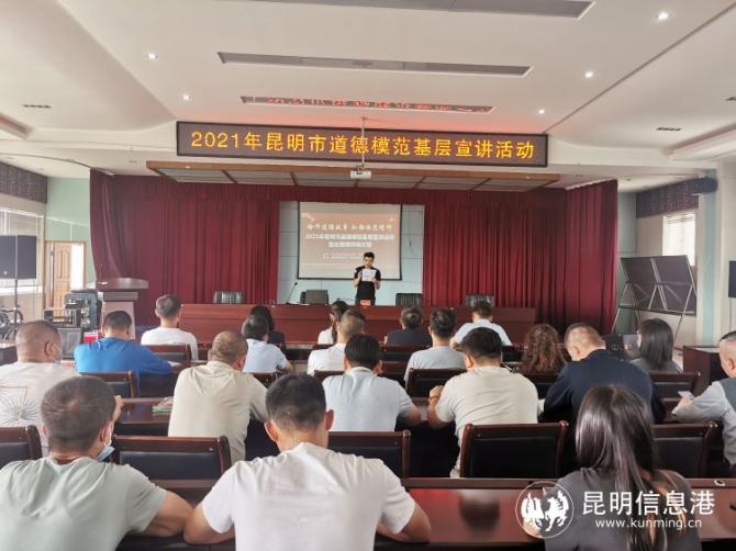 昆明信息港讯 记者尹吉 为倡导好风尚、弘扬正能量,9月14日,2021年昆明市道德模范基层宣讲活动走进昆明市殡仪馆,邀请了第七届昆明市道德模范刘彦宗、张涛、黄艳军、辛佳莉四位代表作事迹分享,为大家讲述亲身经历,传播道德模范的榜样力量。