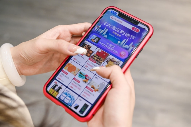 消费者在淘宝上选购湾区好物。新华社记者王丰通联
