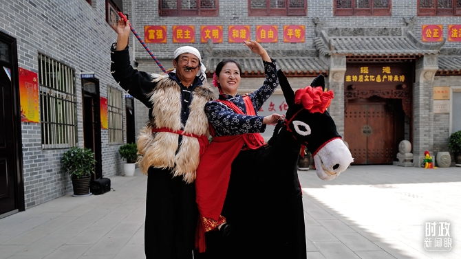 绥德县非遗陈列馆,陕北秧歌表演演员。(总台国广记者李晋拍摄)