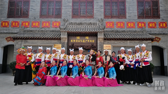 当天在非遗陈列馆为总书记表演的演员合影。(总台国广记者李晋拍摄)