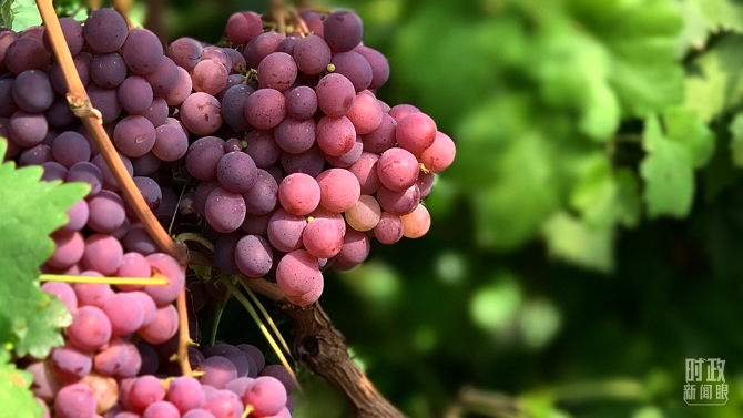 “红地球”葡萄品种是郝家桥村的脱贫产业之一。(总台央视记者马超拍摄)
