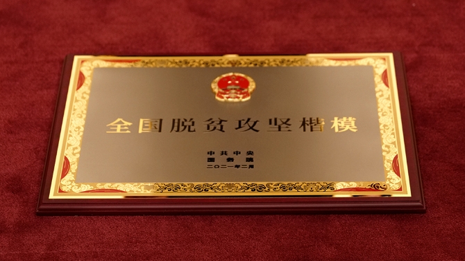 “全国脱贫攻坚楷模”奖牌。(总台央视记者彭汉明拍摄)