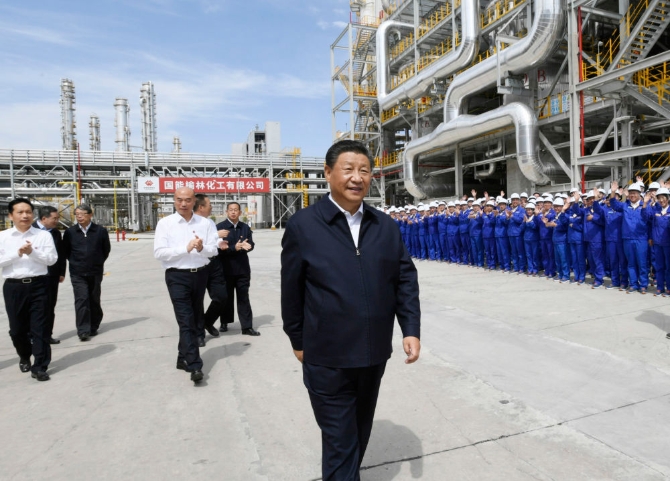 这是习近平在国家能源集团榆林化工有限公司,了解循环经济煤炭综合利用等情况。