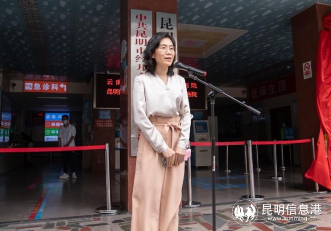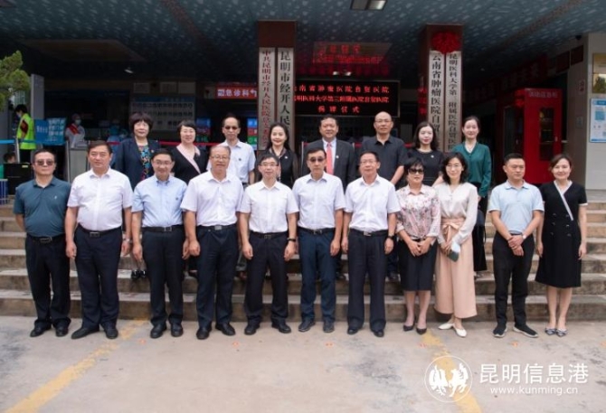 云南省卫生健康委党组书记许勇刚,昆明医科大学党委书记尹向阳,中国(云南)自贸区昆明片区(昆明经开区)管委会主任李河流,北京大学肿瘤医院副院长邢沫,云南省肿瘤医院、昆明医科大学第三附属医院院长黄云超出席揭牌仪式并致辞,共同为自贸医院揭牌。