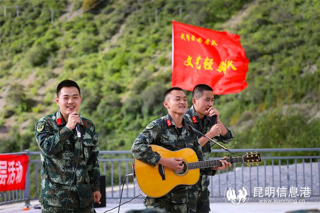 燃!燃!燃!慰问演出在激情四射的舞蹈《热血军营》中拉开帷幕,官兵的眼球瞬间被吸引到舞台中央;相声《捧逗之争》、小品《哥俩好》运用诙谐幽默的形式演绎出云岭大地上武警官兵听党指挥、矢志强军的生动故事;我们驻扎在云岭高原之上,带着青春和热血奔向远方,黎明的曙光已经冲破了黑暗,啊战友,我们已经整装待发......服务小分队原创歌曲《整装待发》将演出推向高潮;演出最后,服务小分队与官兵手牵手跳起民族舞蹈,歌声、掌声、欢笑声汇成一片欢乐的海洋。“服务小分队与官兵共同编排的文艺节目所演绎的都是我们平时的学习、训练和生活,内容接地气更深入人心,我们都比较喜欢”战士郑志华说。