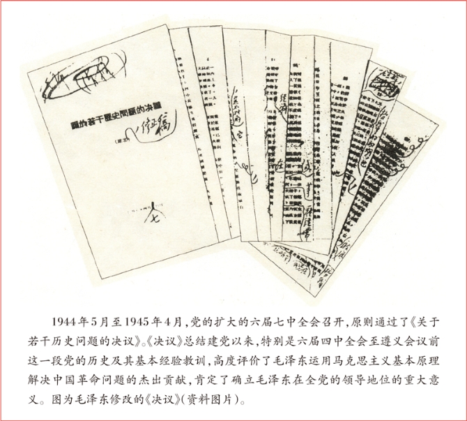 在整风运动过程中,为加强党的集中统一领导,1943年3月20日,中央政治局会议通过《中共中央关于中央机构调整及精简的决定》,推定毛泽东为政治局主席,并决定他为书记处主席。毛泽东、刘少奇、任弼时组成中央书记处,书记处所讨论的问题,“主席有最后决定之权”。这是一次重要的中央机构和人事的调整,从组织手续上完成了毛泽东在全党的领导核心地位的确立。整风运动的开展,对推动毛泽东思想进一步成熟、建立起独特的思想体系并取得全党共识也起了重要的催化作用。全党加深了对毛泽东思想的认识,掀起了学习和研究毛泽东思想的热潮。在整风基础上通过的《关于若干历史问题的决议》,高度评价了毛泽东运用马克思列宁主义基本原理解决中国革命问题的杰出贡献,肯定了确立毛泽东在全党领导地位的重大意义,增强了全党在毛泽东思想基础上的团结。