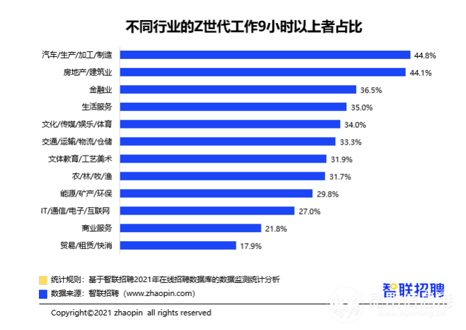 “Z世代”中,34.1%的金融从业者、33%的互联网人对工作表示满意,比例高于汽车制造的16.9%、房地产的21.1%。从岗位来看,财务/会计/审计岗位的“Z世代”从业者对工作满意的比例最高,占比达36.5%,而生产/加工岗位的“Z世代”从业者满意度最低,占比仅16.8%。
