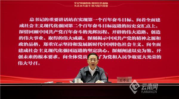 昆明理工大学红土会堂里,来自在昆高等院校的师生参加报告会。王予波与大家交流学习习近平总书记“七一”重要讲话精神的心得体会。他指出,习近平总书记的重要讲话,是一篇光辉的马克思主义纲领性文献,是当代版《共产党宣言》,充分展现了伟大领袖引领伟大政党、伟大民族实现伟大复兴、伟大人民创造伟大历史、伟大时代续写伟大光荣的恢弘篇章。希望大家从学习中坚定信仰、鼓舞斗志、汲取力量,强化强国有我的使命担当,不负时代,不负韶华,不负党和人民的殷切期望。