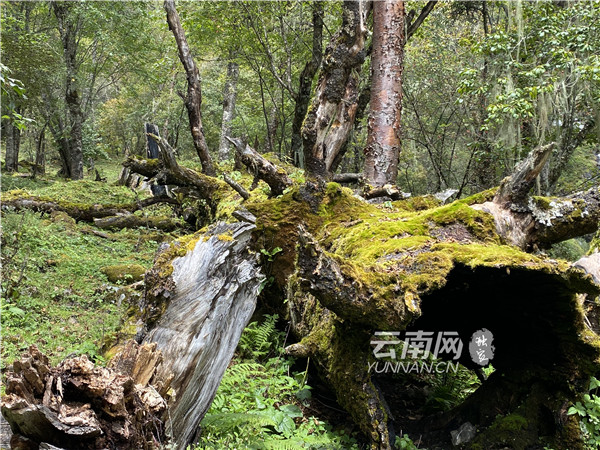 南几洛景区内有大小湖泊11个,山峰、湖泊、森林、野花和蓝天白云一起,构成了一幅美丽的山水画卷。景区内植被丰茂古木参天,密林大树参差交错,无边无际。随处可见被誉为天然环境监测器的“树胡子”,多种动植物在这里共生共存,是云南生物多样性的重要组成部分。