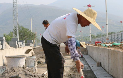 在元江滨江大道中段,工人正在工作。新华网发 杨晓国 摄