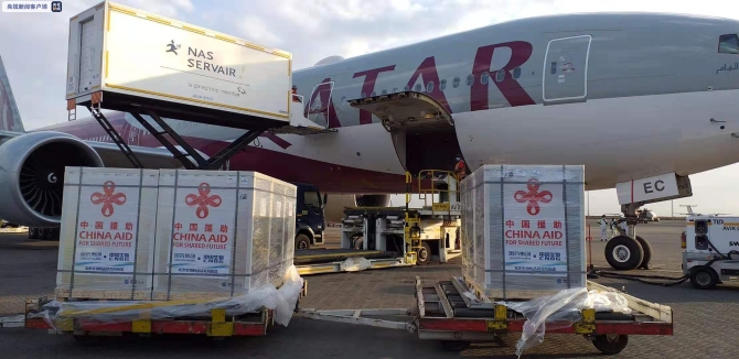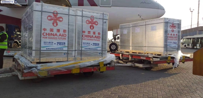 中国援助肯尼亚的首批新冠疫苗运抵乔莫·肯雅塔国际机场