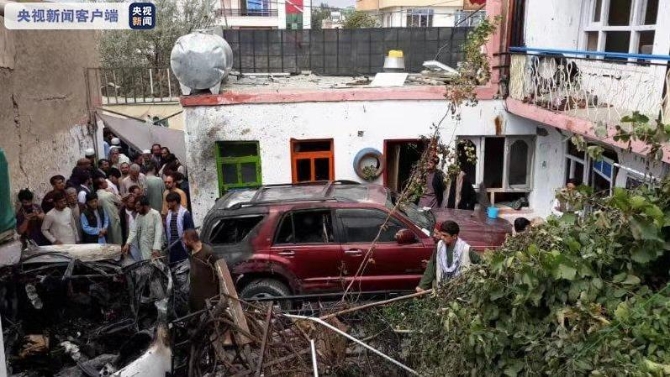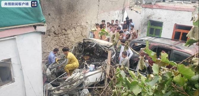 △喀布尔一名无辜平民停放在自家院子中的车辆遭美军无人机轰炸