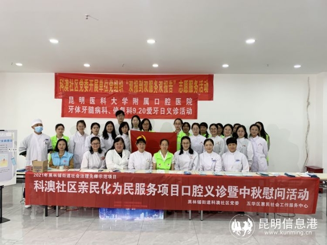 昆明信息港讯 记者昝娟娟 9月20日是我国第33个“全国爱牙日”,为提高社区居民口腔保健意识及对口腔健康的关注程度和能力;进一步普及口腔卫生知识,强化公众对口腔卫生的关注,科澳社区党委于9月17日在科澳社区党群服务中心大厅开展单位党组织“双报到双服务双报告”爱牙日口腔保健义诊志愿服务活动。