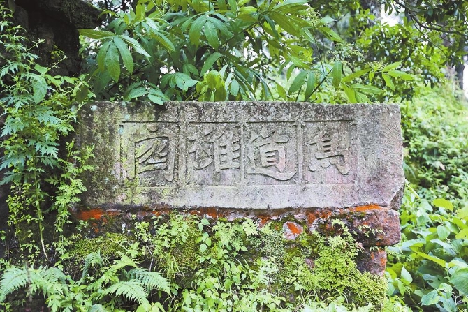 走在寂静的古道上,植被已经将路遮掩大半,关隘附近的石块上留着一个深达25厘米的马蹄窝。再往前走,明代万历年间立下的一块石碑,上书“鸟道雄关”4个大字。