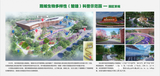 2020年,依托楚姚高速公路建设,楚雄州生态环境局精心组织编制了《楚姚高速公路沿线生物多样性调查研究及科普示范》方案,在楚姚高速公路沿线开展了生物多样性保护试点示范,其中建设路域生物多样性(楚雄)科普示范园是该项目中的重点内容。