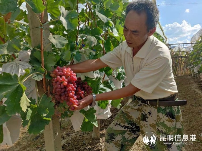 那时,刚初中毕业的琚福金看着父母种传统农作物辛苦,也去到富民人毕应乙建的葡萄地里打工学技术。琚福金说:“当时,水稻一亩能卖不到1000元的价格,而葡萄可以卖到4000-6000元,这么可观的收入让我们一家人下定决心,要转变传统种植模式。加之村里提出产业结构调整,于是1995年,我们家停种了烤烟;2002年停种了水稻,同时还把一些村民无能力种植的土地收过来一并发展葡萄种植,2015年起便达到了16亩的种植规模,如今每亩葡萄产量可达2吨。”