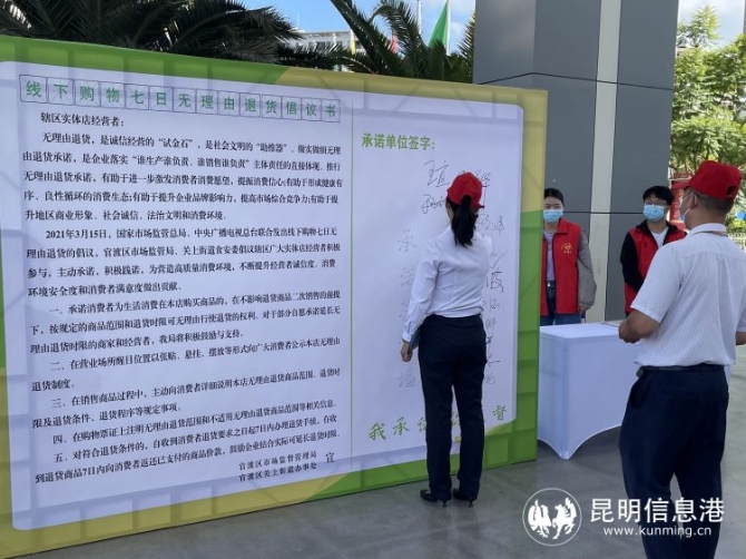 官渡区市场监督管理局关上监管所副所长陈勇介绍,开展线下购物七日无理由退货倡议,是官渡区深入推进放心消费创建活动,不断改善消费环境和消费体验,引导居民扩大消费、放心消费的重要举措,也是积极响应国家市场监管总局与央视联合发出的线下购物七日无理由退货倡议,让放心消费在昆明落地落细的具体行动。
